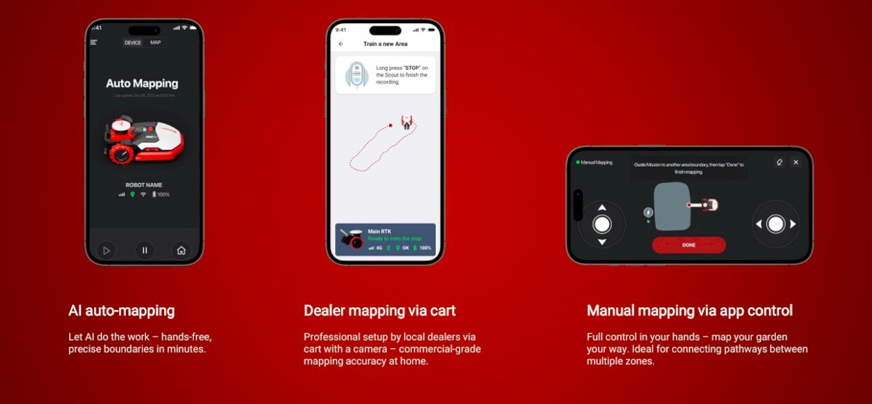 EyePilot® also features AI-powered edge-hugging auto-mapping, staying just 2–5 cm from boundaries for visibly fuller coverage — adapting seamlessly to walls, fences, or mesh edges.